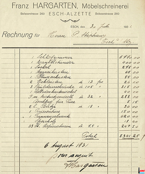 | 1931 | Möbelschreinerei Hargarten Franz, Esch/Alzette, Beleserstrasse 260 |