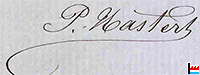 | 6.11.1879 | ![]() ![]() Au Cavalier Jost - 6.11.1879 Usine à vapeur Pâtes Alimentaires & Chocolats Hastert frères Luxembourg ![]() Signature P. Hastert |