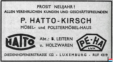 | <=1941, 1948/49 | Hatto - Kirsch Pierre 122 route de Thionville Luxembourg |