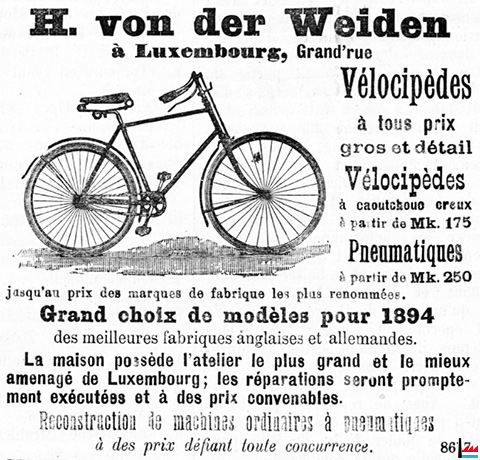 | 1893 | Heinricht & von der Weiden, maison de vélocipèdes, Luxembourg, 18 Grand'rue |