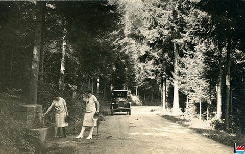 ![]() Vir an der Mëtt d'Haus Jos. Henckels, 35 route de Colmar-Berg (fréier 35 route de Liège), Mersch - am Hannergrond d'Mierscher Klouschter (Extrait de la photo originale pour carte postale: Manufacture de Cartes-Vues, Edm. Hansen, Mersch; collection: industrie.lu) |