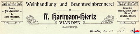 Weinhandlung und Branntweinbrennerei Hartmann - Hiertz, Vianden - 1909 (Collection: industrie.lu)