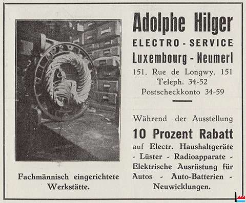 | <=1942 | Hilger Adolf, Ankerwickelei und elektrische Installationen 151 route de Longwy Luxembourg Tél: 3452 |