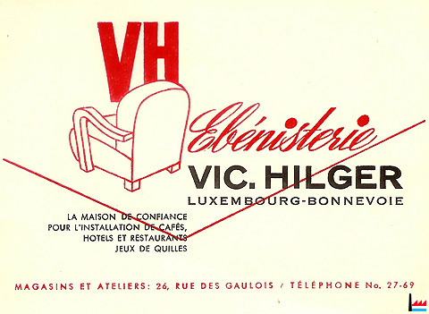 | <=1962 | VH - Vic. Hilger - Ébénisterie Luxembourg - Bonnevoie Magasins et ateliers: 26, rue des Gaulois |