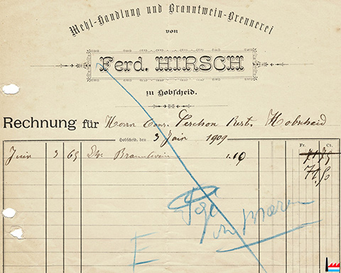 | <=1909 | ![]() Mehlhandlung und Branntwein-Brennerei Hirsch Ferd., Hobscheid (Collection: industrie.lu) |