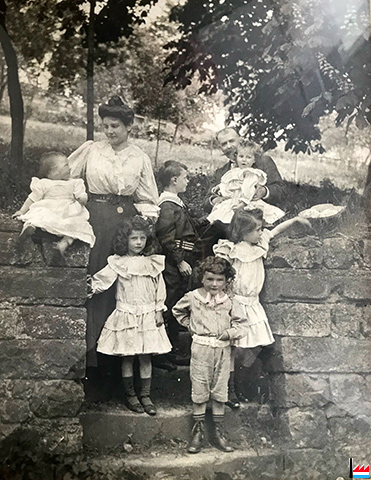 ![]() La famille Edmond Hodez - Louise Marcelle Aux Cousteaux de Conty, avec 6 enfants - ~ juin 1907 (Album de la famille HODEZ) |