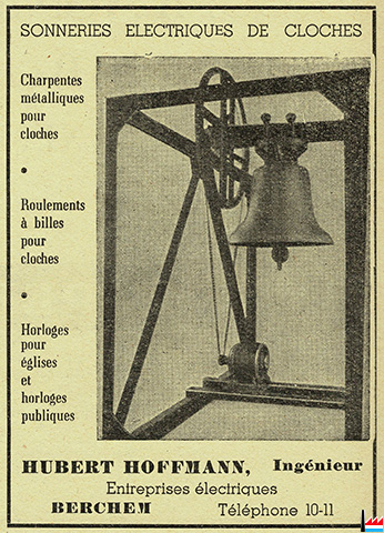 | <=1948 | Hoffmann Hubert, ingénieur, Berchem, entreprises électriques Sonneries électrques de cloches Horloges pour églises et horloges publiques |