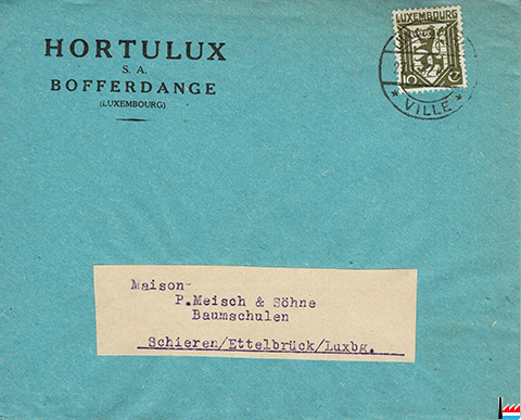 Hortulux S.A., Bofferdange - à P. Meisch & Söhne, Baumschulen, Schieren (Enveloppe - 27.1.1932; Collection: industrie.lu)