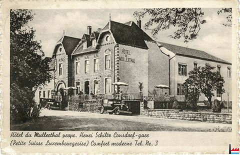 ![]() Hôtel du Mullerthal, H. Schiltz, à Consdorf - Gare (Extrait d'une carte postale; collection: industrie.lu) |
