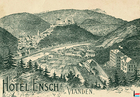 Hôtel Ensch, Vianden - vers 1923 (Carte postale: Edition artistique, R. Tippmann, Photogr., Diekirch; collection industrie.lu)