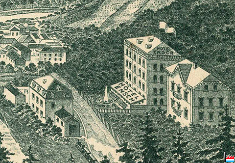 | * 1897 | Hôtel Ensch, Vianden ![]() Hôtel Ensch, Vianden - 17.8.1897 (Carte postale: collection industrie.lu) adressée à Aug.? Doucet de Tillier, Château de Tillier, Leuze Longchamps, Belgique, Province de Namur, par son fils |