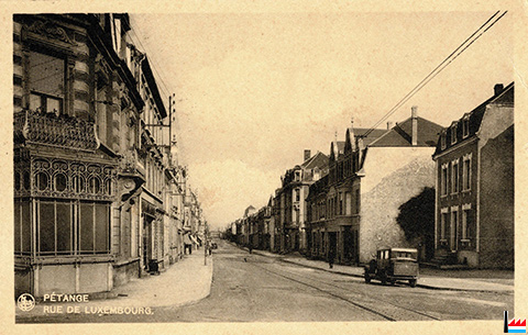 | <=1934 | ![]() Hôtel du Château, Pétange, rue de Luxembourg (Carte postale: Editeurs: Meyer & Hueber, Imprimerie-Papeterie, Pétange - Nels; Collection: industrie.lu) |