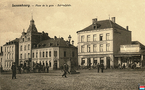 ![]() Grand Hôtel du Commerce - Hôtel International - Hôtel Staar - Hôtel Clesse - Hôtel Excelsior, Luxembourg, place de la Gare - vers 1931 (Carte postale: Edition W. Capus, Luxembourg; collection: industrie.lu) |