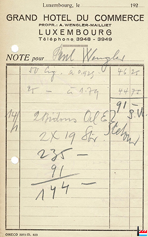 ![]() Grand Hôtel du Commerce, Luxembourg - face gare - Bières Henri Funck Prop.: A. Wengler - Mailliet, tél: 3948, 3949 ![]() Albert Wengler-Mailliet - Grand Hôtel du Commerce, Luxembourg - Note pour Paul Wengler (collection: industrie.lu) |