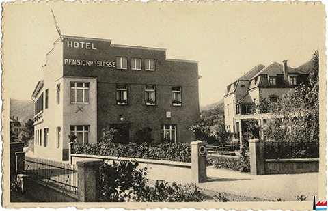 Hôtel Petite Suisse, Echternach, 56 rue André Duchscher (Carte postale: E.-A. Schaack - Luxembourg - Fabrication Française; collection: industrie.lu)