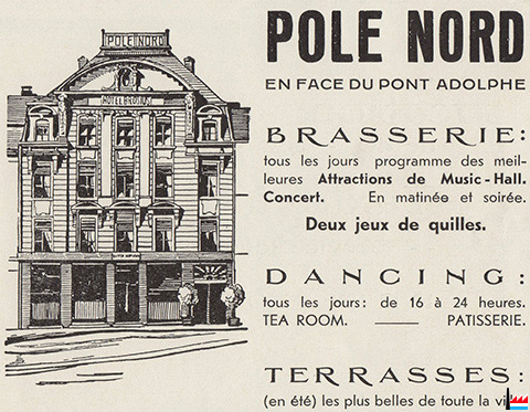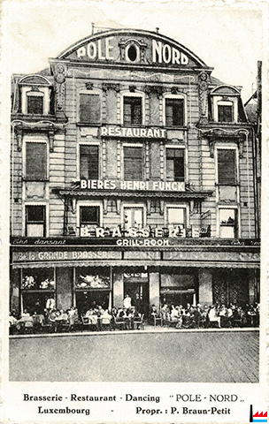 | <=1949 | ![]() Brasserie - Restaurant - Dancing Pôle Nord, Luxembourg, place de Bruxelles, tél: 2749 (Carte postale: Phototypie Nationale Belge Chrétien Peters, Bruxelles 4; Collection: industrie.lu) Propriétaire: Pierre Braun-Petit |