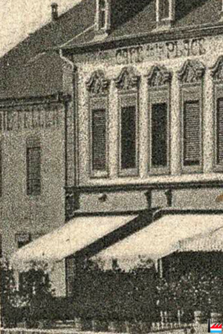 ~ 1900: Café - Restaurant Hôtel Weiss-Ackels, Pétange, 2 route de Luxembourg - à sa droite: Café de la Place