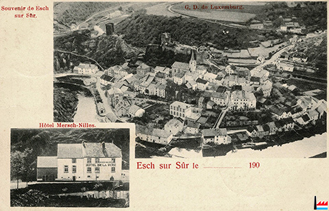 | <=1897 | ![]() Hôtel de la Sûre, Esch/Sauer - 1897 (Auszug aus der Postkarte: Druck und Verlag v. Louis Glaser, Leipzig; Collection: industrie.lu) |