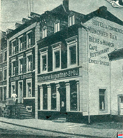 Hôtel du Commerce, Esch/Alzette, 2 Grand'rue - Ernest Spiesse - Münchener Bier (Extrait de la Carte postale: J.M. Bellwald, Echternach, N° 406?; Collection: industrie.lu)