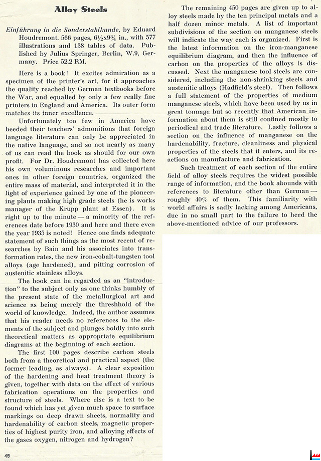 Alloy Steels - Einführung in die Sonderstahlkunde, by Eduard Houdremont - Metal Progress page 48 - Archives Camille Aschman Jr.