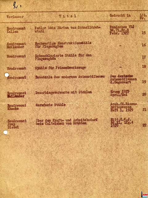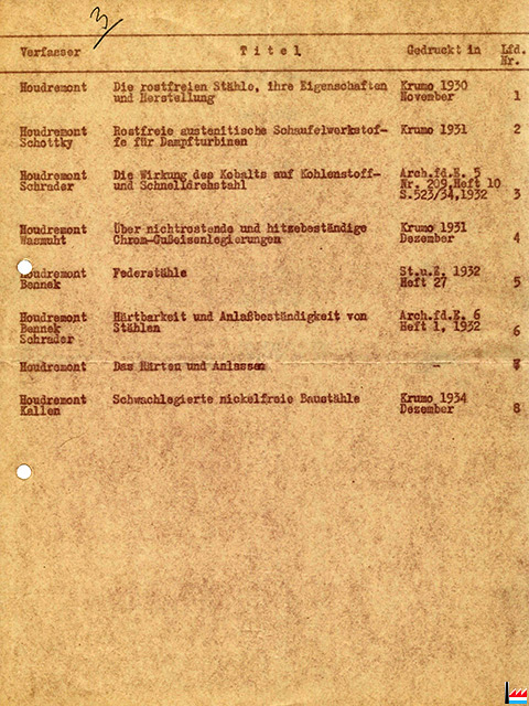 Eduard Houdremont - Auzug aus seinen Veröffentlichungen - 22.11.1935 - Archives Camille Aschman Jr.