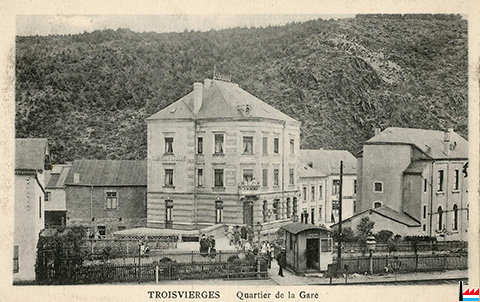 Hôtel de la Gare - Hemmer soeurs, Troisvierges (Carte postale: Maison de gros P. Houstraas, Luxembourg & Metz Nr 12; collection industrie.lu)