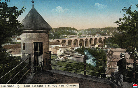 Spueneschen Tiermchen an der Stad - Lëtzebuerg - Échauguette espagnole - Tour espagnole - Tourelle d'angle, Luxembourg - Spanisches Türmchen - Postenerker, Luxemburg (Carte postale: 250. Postkarten-Manufaktur P. Houstraas, Luxemburg, Augustinerstraße; Collection: industrie.lu)