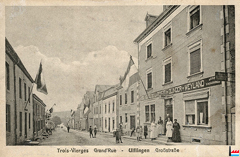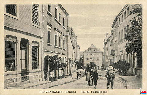 Grevenmacher, Grand'rue (Carte postale: No. 9 Maison de gros P. Houstraas, Luxembourg & Metz; Collection: industrie.lu)