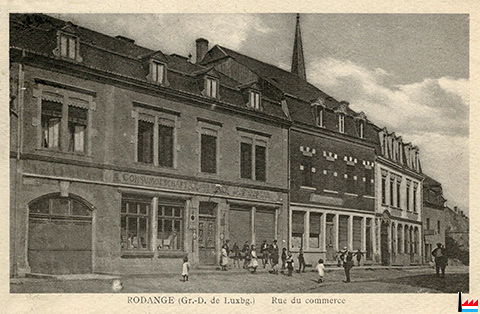 Consumgeschäft, Rodange, rue du Commerce <=1920 (Carte postale: No. 7 Maison de gros P. Houstraas, Luxembourg et Metz; Collection: industrie.lu)