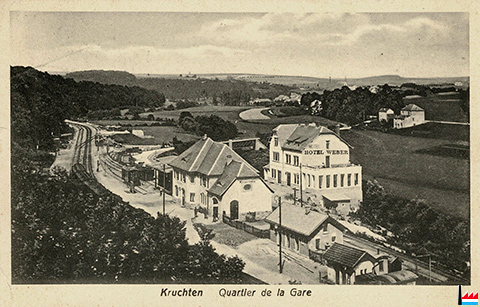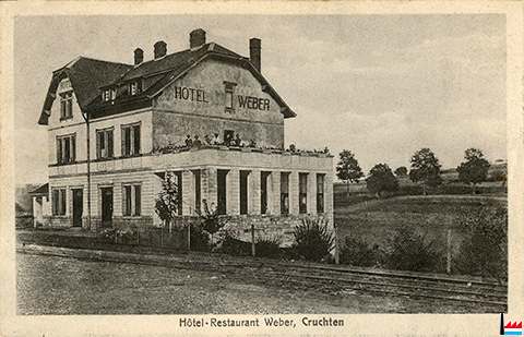 Hôtel - Restaurant Weber, Cruchten - vers 1917 (Carte postale No 3 Manufacture de cartes P. Houstraas, Luxembourg, Rue des Augustins; collection: industrie.lu)