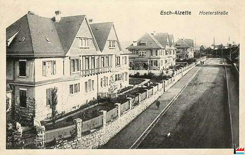 Ingenieurhäuser der Gelsenkirchener Bergwerks A.G. in der Hoeter-Straße (heute: rue Bessemer) in Esch/Alzette - 27.5.1916 - Feldpost (Carte