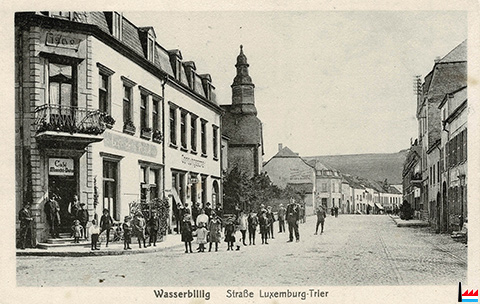 Grevenmacher, rue de Luxembourg - <=1933 (Carte postale: No. 8 Maison de gros P. Houstraas, Luxembourg & Metz; Collection: industrie.lu)