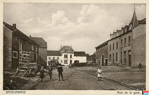 Bascharage, rue de la Gare (Carte postale: Nr. 5 Maison de gros P. Houstraas, Luxembourg et Metz; Collection: industrie.lu)