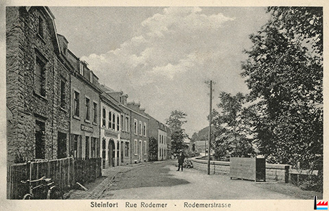 Steinfort, rue Rodemer - Rodemerstrasse = rue de Kleinbettingen (Carte postale: Papiers en gros P. Houstraas, Luxembourg-Gare Nr 6; collection industrie.lu)