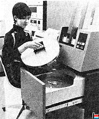Ordinateur industriel IBM 1800 à l'aciérie ARBED à Esch-Belval L'ordinateur est relié à un très grand nombre d'appareils de mesure, fournit aux ingénieurs toutes les directives nécessaires pour assurer l'optimisation de la production - installation pilote qui assera la conduite entièrement automatique de cette aciérie |