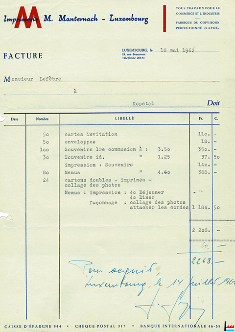 ![]() Imprimerie Manternach, Luxembourg, 24 rue Beaumont (Collection Serge Pletgen) |