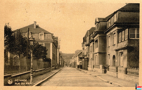 Pétange, rue du Parc - <=1934 (Carte postale: Editeurs: Meyer & Hueber, Imprimerie-Papeterie, Pétange - Nels; Collection: industrie.lu)