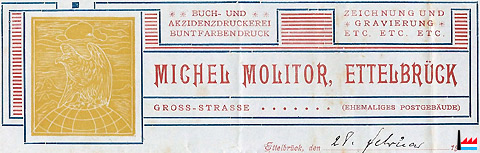 | <=1935 | Imprimerie Michel Molitor, Ettelbruck Tél: 165 |