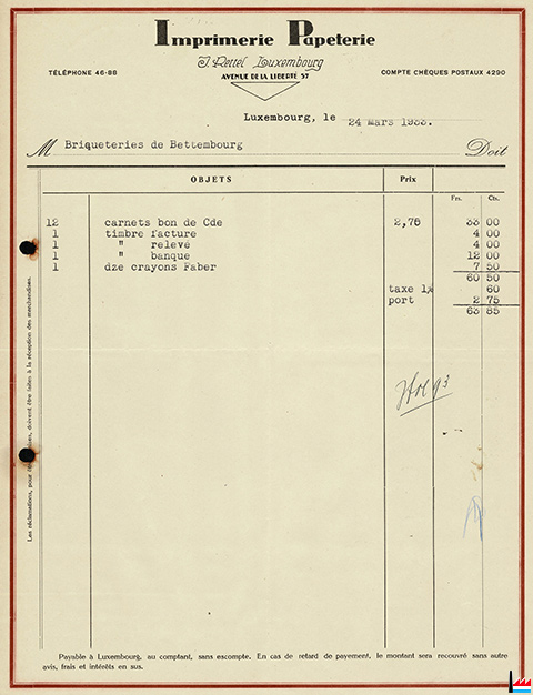 | <=1933 | ![]() Imprimerie - Papeterie Rettel J., Luxembourg, 57 avenue de la Liberté, tél: 4688 (Collection: industrie.lu) |