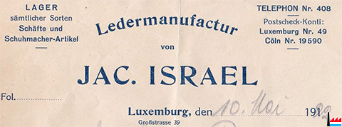 | <=1907 | Jakob Israel, Lederhandlung 39 Grand'Rue, Luxembourg |
