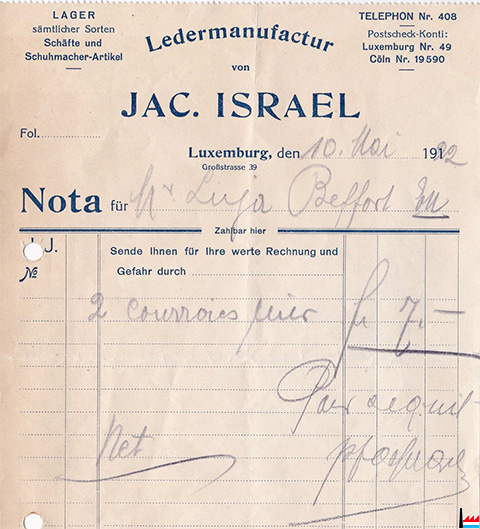 Ledermanufactur von Jacques Israel, 39 Großstraße, Luxemburg - facture: 1922 (Collection: Yves Kemp)