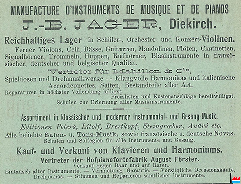 | 1904 | Manufacture d'instruments de musique et de Pianos J.-B. JAGER, Diekirch |