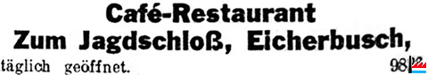 | <=3.1933 | ![]() Café zum Jagdschloss, Eicherbusch (LW: 11.3.1933) täglich geöffnet |