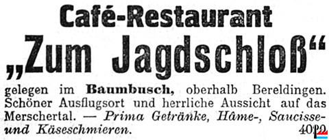 | 1948 | Café-restaurant Zum Jagdschloss, zu vermieten |
