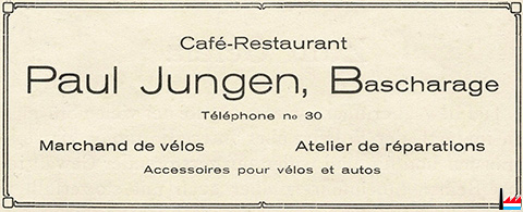 | <=1935 | ![]() Café-Restaurant Paul Jungen, Bascharage, tél: 30 - 1935 (Collection: industrie.lu) Marchand de vélos, Ateliers de réparations Accessoires pour vélos et autos |