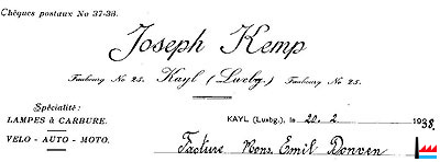 | 1921/22 | Kemp - Sand Jacques, Kayl, fabricant de lampes à acétylène |