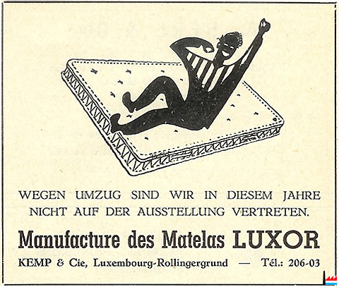 | 1956 | Fabrique de matelas LUXOR - Kemp et Cie, Rollingergrund | ||