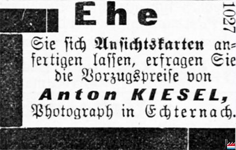 | 1898 | ![]() Anton Kiesel, Photograph in Echternach (OMZ: 16.9.1898) |