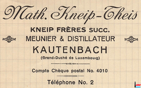 | 6.1946 | ![]() Moulins & Distillerie Nic. Kneip, Kautenbach - Facture à Schinker, Consthum - 10 l Branntwein (Collection: industrie.lu) |