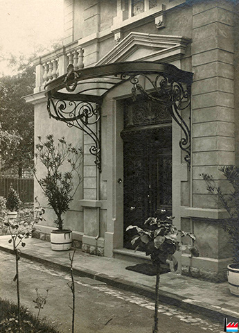 Marquise en fer forgé fabriqué par Atelier de construction et serrurerie d'art Nic. Koch, Luxembourg, 12 avenue Monterey (Photo: P. Kutter, Luxembourg; Collection: koch.lu)